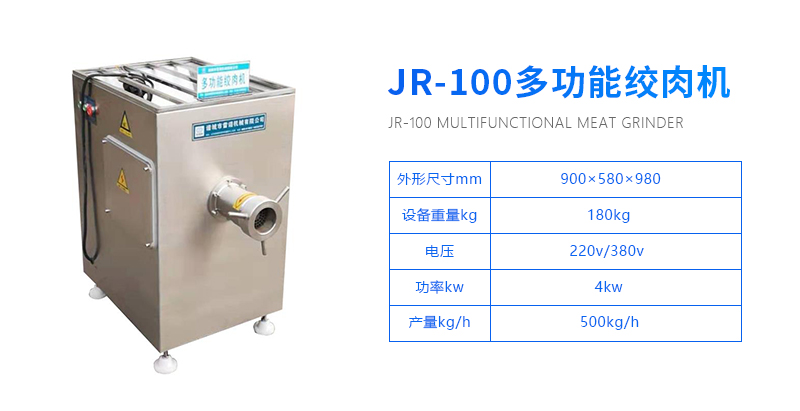 JR-100型多功能絞肉機(jī)適用于各種凍鮮肉、雞鴨骨架、豬皮、牛皮、水果蔬菜等.本機(jī)工作主要靠旋轉(zhuǎn)的螺桿將料斗箱中的原料推 擠到預(yù)切孔板處,利用轉(zhuǎn)動(dòng)的切刀刃和孔板上孔眼刃形成的剪切作用將原料切碎,并在螺桿擠壓力的作用下,將原料不斷排出機(jī)外。本機(jī) 可根據(jù)物料性質(zhì)和加工要求的不同,配置相應(yīng)的刀具和孔板,即可加工出不同尺寸的顆粒,以滿(mǎn)足下道工序的工藝要求。性能特點(diǎn):多功 能絞肉機(jī)、通用性好、適用范圍廣、生產(chǎn)效率高;