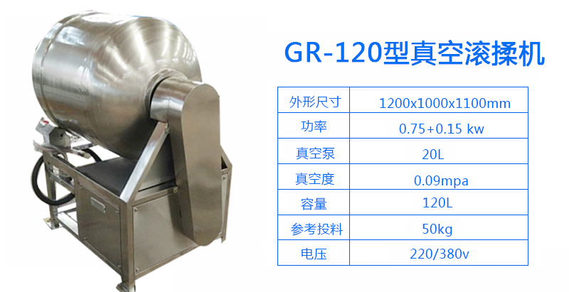 1、滾揉機的荷載量:滾揉機在轉動的時候,如果筒內的肉數(shù)量太多,轉動則會受到很大的影響,攪拌不均勻,如果桶內的肉量太少,會導致滾揉過度,造成的肉質損壞,并且,消耗成本增大。我們建議滿筒荷載量的60%左右,滾揉機上下浮動5%之間,根據(jù)肉的密度而定。