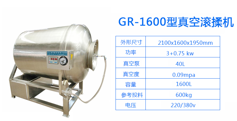 真空滾揉機是在真空狀態(tài)下,利用物理沖擊的原理,讓肉在滾筒內(nèi)上下翻動,相互撞擊、摔打,達到按摩、腌漬作用,使肉均勻的吸收腌漬,提高肉的結(jié)著力及產(chǎn)品的彈性,通過滾揉、按摩能使肉體蛋白質(zhì)分解成水溶性蛋白,易被人體吸收,同時能使添加料(淀粉等)與肉體蛋白質(zhì)互為融合以達到肉質(zhì)變嫩,口感好,出口率高。本真空滾揉機機具有肺呼吸功能,讓產(chǎn)品在滾筒內(nèi)膨脹、縮小了往復運動,改善了肉組織的結(jié)構(gòu),提高了切面效果。