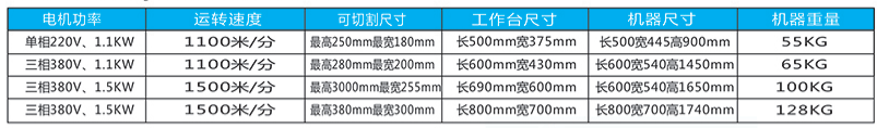 ◆設(shè)有鋸條導(dǎo)槽和鋸沫收集盒的配套裝置可確保加工材料美觀,上下鋸條帶輪裝卸簡(jiǎn)單,清洗方便。設(shè)備參數(shù)